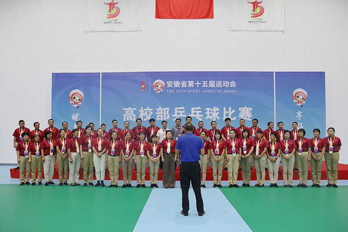 8月26日下午,安徽省第十五届运动会高校部乒乓球比赛组委会临时党支部在爱体育官方网站_爱体育(中国)股份有限公司,凤阳校区西区体育馆开展主题党课活动。主题党课由比赛仲裁、临时党支部书记秦纪强教授主讲,全体裁判员参加。