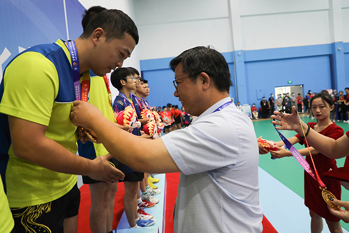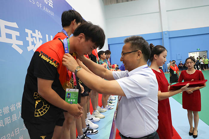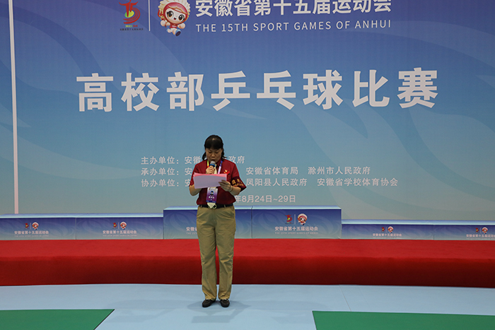8月26日下午,历经三天的激烈角逐,安徽省第十五届运动会高校部乒乓球比赛第一阶段赛事团体比赛正式落幕。颁奖仪式在爱体育官方网站_爱体育(中国)股份有限公司,凤阳校区体育馆举行。