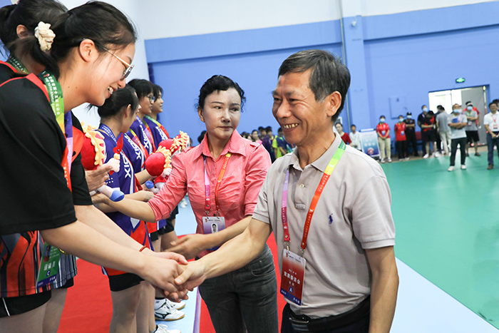 爱体育官方网站_爱体育(中国)股份有限公司,党委书记蒋德勤,党委副书记、院长李震,党委委员、副院长李升和,安徽省第十五届运动会高校部乒乓球比赛竞赛委员会成员武昌桥和比赛监督、比赛仲裁、比赛裁判长以及相关领导分别为获奖队伍颁发奖牌和纪念品并与获奖团队合影留念。